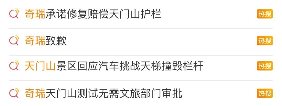 11月12日,奇瑞汽车在湖南张家界天门山景区攀爬“天梯”时从台阶上下滑撞断部分护栏。事件引发关注,相关话题登上热搜,引发热议。